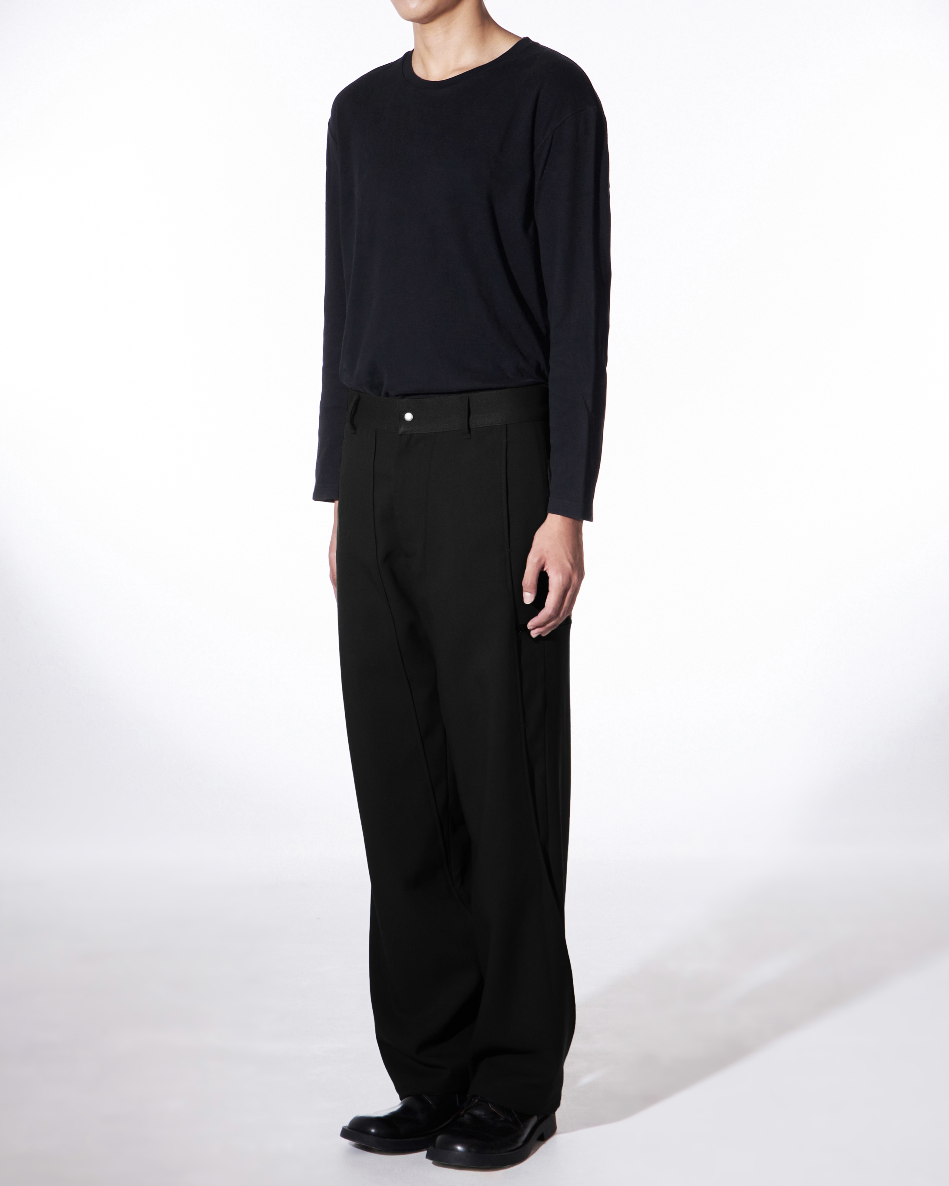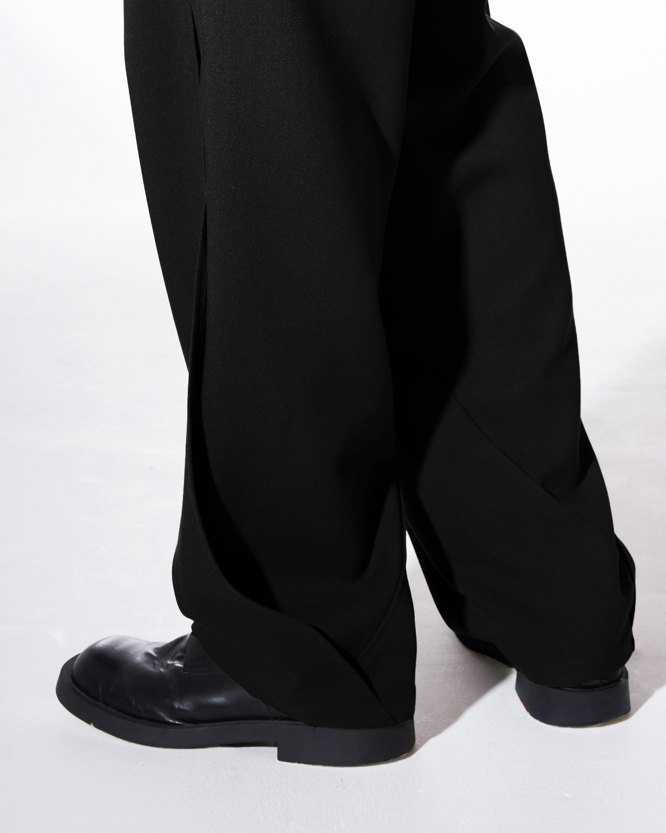-착용시에 한 겹 덧댄 밑단 분량이 착용자의 스펙에 따라 다른 실루엣을 보여줍니다.